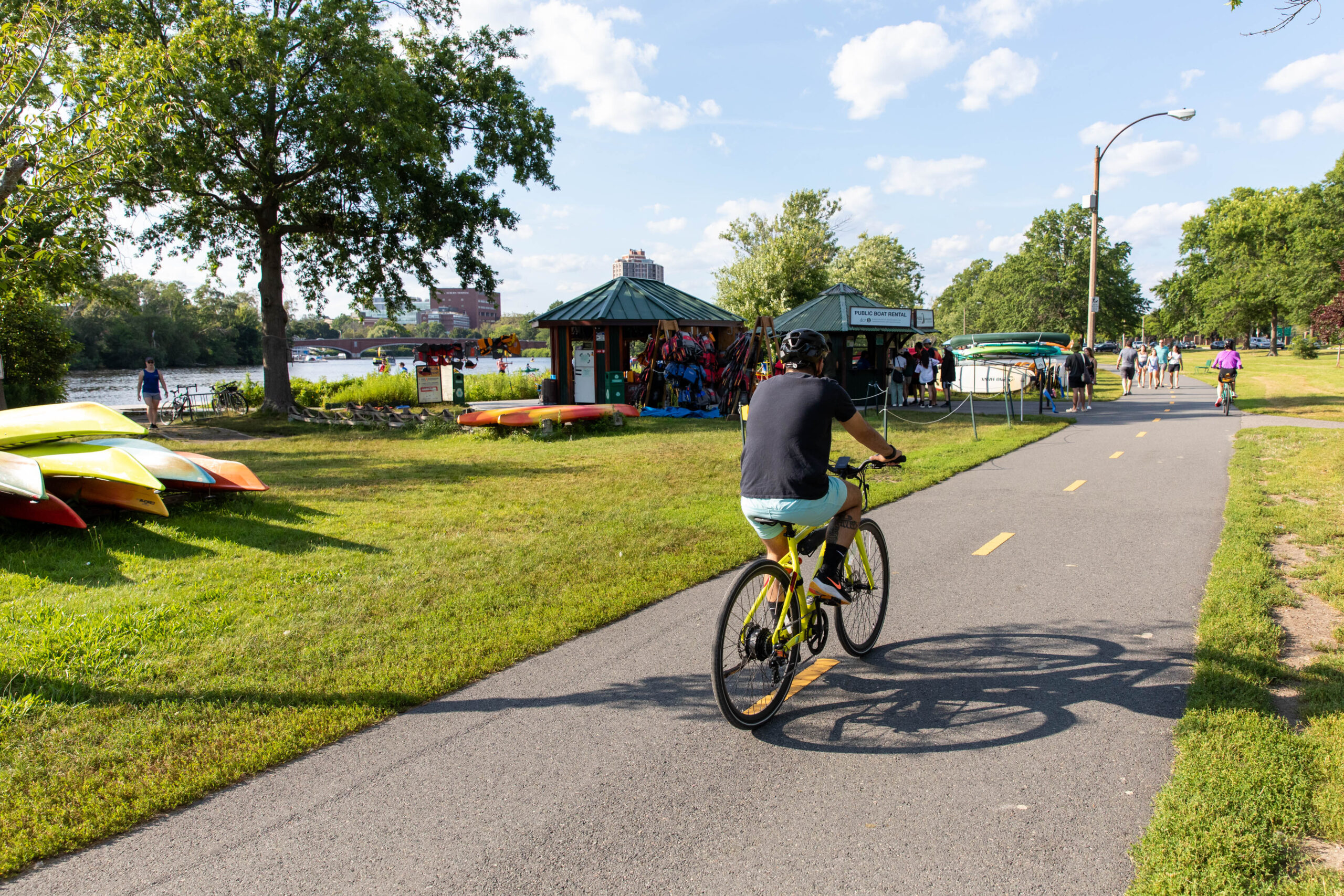 Riverbend Park is adjacent to Memorial Drive and extends from the Eliot Bridge JFK Street (more info on the temporary closure below) to Western Avenue. From the last Sunday of April through the second Sunday of November, Memorial Drive is closed to vehicular traffic from 11am to 7pm, creating a large stretch of open space alongside the parklands to accommodate cycling, skating, running, and a range of other activities. More information is available at the City of Cambridge and DCR websites.
