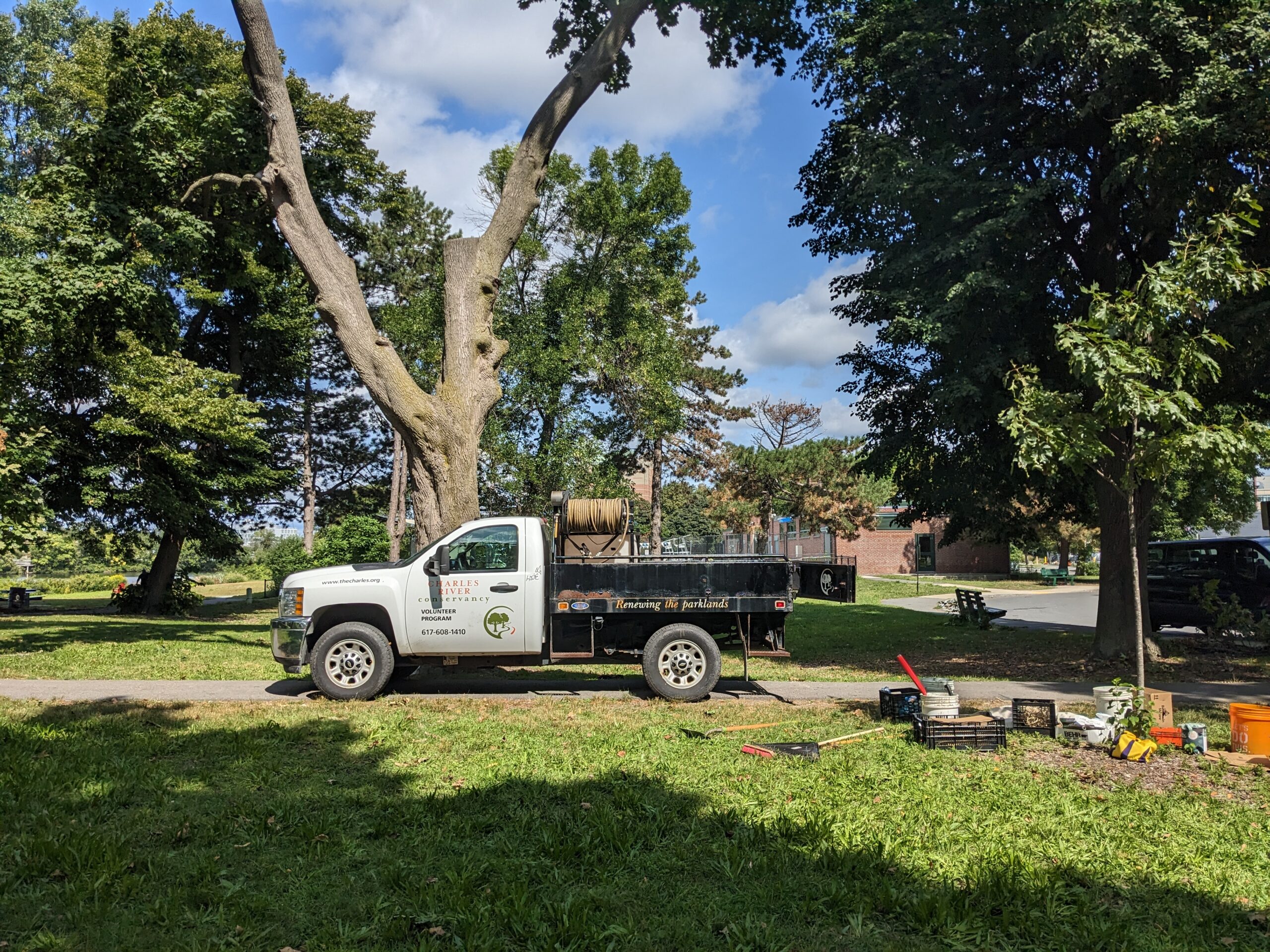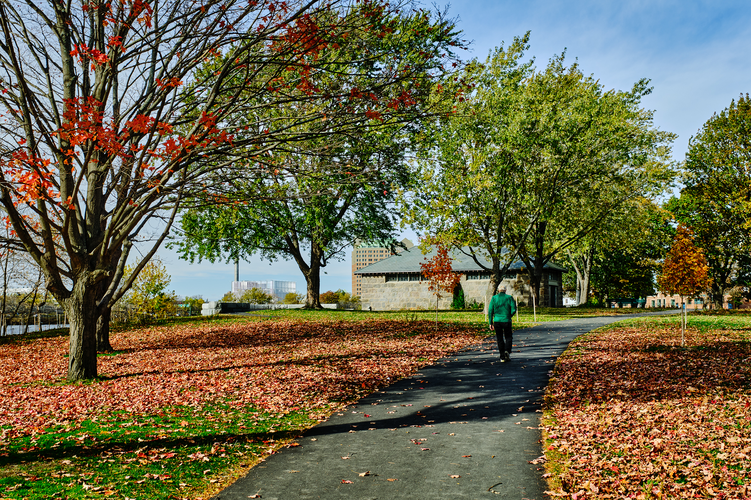 Magazine Beach is a 15-acre park in Cambridge, featuring an historic granite “Powder House,” which was built in 1818 as a state gunpowder magazine. The building was redeveloped in 1899 by Olmsted & Eliot, as a bathhouse to accommodate a lively swimming scene at Magazine Beach. As a result of industrialization, poor water quality and contaminated sediments resulted in the closure of the public beach in 1955. Today, the park features a large treated swimming pool, playing fields, picnic areas, pathways, and large swaths of open space to accommodate crowds for events such as the Head of the Charles Regatta, held annually in October. To learn more about work being done at Magazine Beach, visit the Magazine Beach Partner’s blog. The Conservancy regularly hosts volunteer events at Magazine Beach.