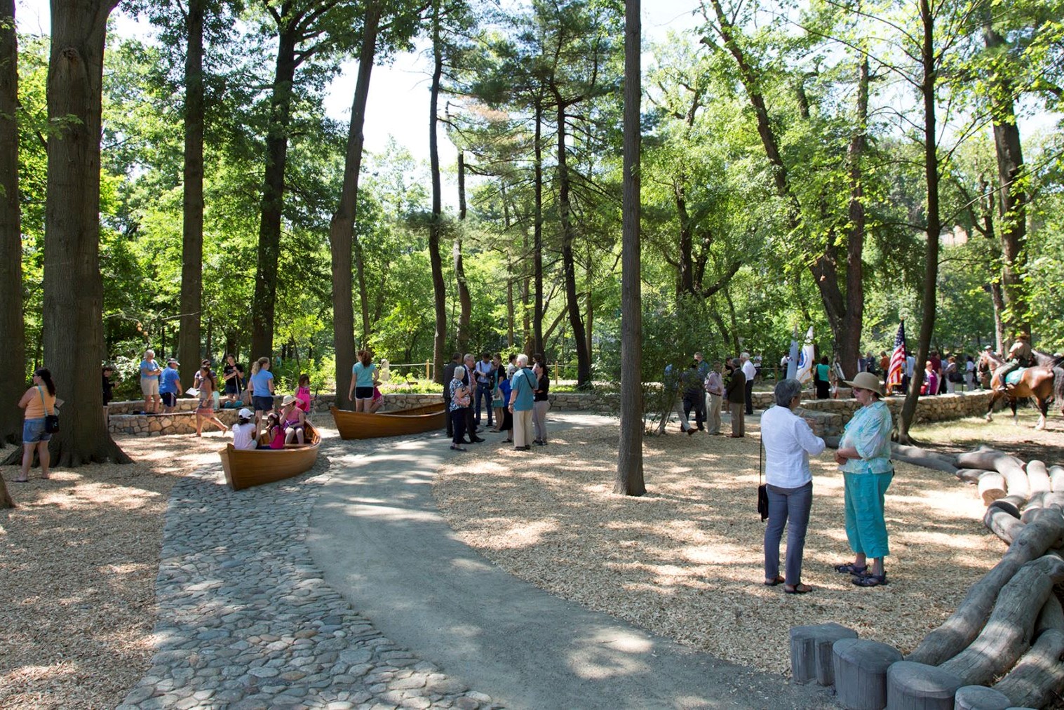 Watertown Riverfront Park is nestled along Charles River Road in Watertown, between Perkins School for the Blind and the Galen Street Bridge. This mile-long stretch includes walking and biking paths, gorgeous river outlooks and open green space, plus a playground with a basketball court. On the western (upstream) end of the park is the “Braille Trail”, a unique and amazing quarter-mile walking loop designed to be enjoyed by blind and low-sighted individuals. Guiding wires help users stay on the trail, and differently shaped beads indicate park features, many of which have interpretive signs that can be read in braille. The center of the trail includes a sensory garden with fragrant plants, interesting textures, and other tactile or sonic elements including boat- and marimba-shaped benches and a braille engraving of poetry. The Braille Trail, and the broader Watertown Riverfront Park, are the culmination of sustained advocacy and partnerships between DCR, the Solomon Foundation, Sasaki, Perkins School for the Blind, and local community advocates.